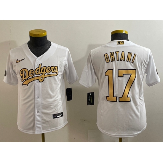 >Youth Los Angeles Dodgers #17 Shohei Ohtani White 2022 All Star Stitched Flex Base Nike Jersey
