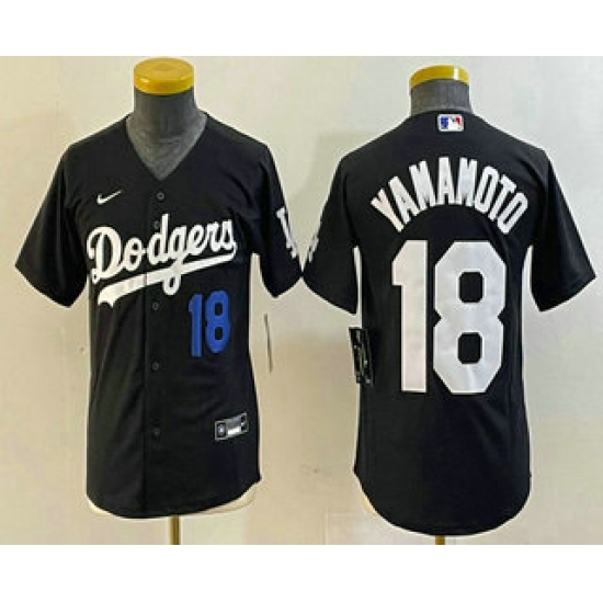 Youth Los Angeles Dodgers #18 Yoshinobu Yamamoto Number Black Turn Back The Clock Stitched Cool Base Jersey1