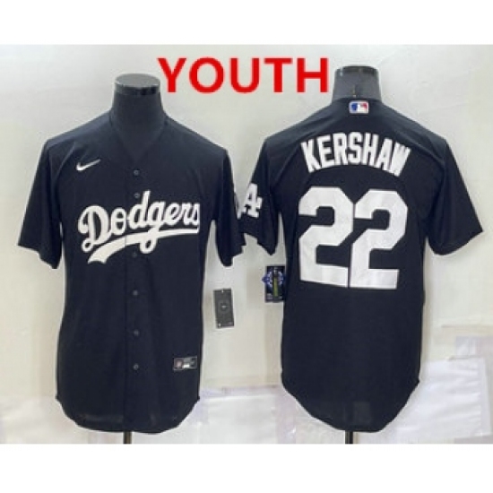 Youth Los Angeles Dodgers #22 Clayton Kershaw Black Turn Back The Clock Stitched Cool Base Jersey