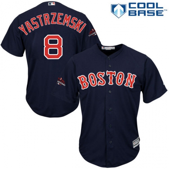 >Youth Majestic Boston Red Sox #8 Carl Yastrzemski Authentic Navy Blue Alternate Road Cool Base 2018 World Series Champions MLB Jersey