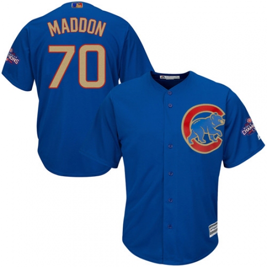 Home>MLB>Chicago Cubs>Joe Maddon>Youth Majestic Chicago Cubs #70 Joe Maddon Authentic Royal Blue 2017 Gold Champion Cool Base MLB Jersey