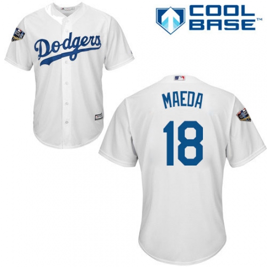 Youth Majestic Los Angeles Dodgers #18 Kenta Maeda Authentic White Home Cool Base 2018 World Series MLB Jersey