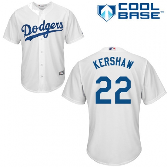 Home>MLB>Los Angeles Dodgers>Clayton Kershaw>Youth Majestic Los Angeles Dodgers #22 Clayton Kershaw Authentic White Home Cool Base MLB Jersey