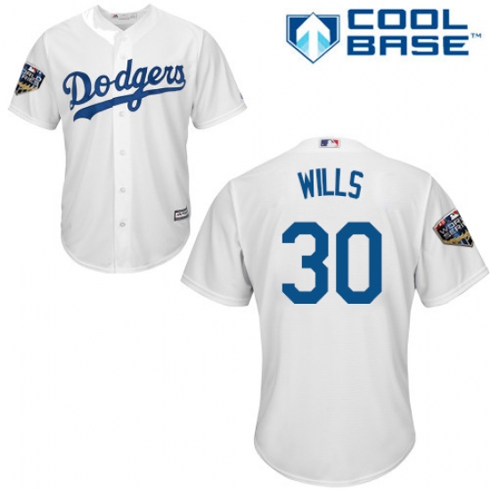 >Youth Majestic Los Angeles Dodgers #30 Maury Wills Authentic White Home Cool Base 2018 World Series MLB Jersey