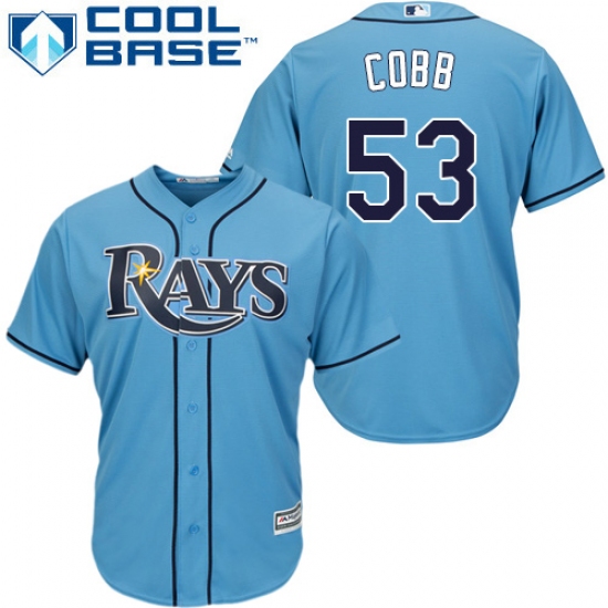 Home>MLB>Tampa Bay Rays>Alex Cobb>Youth Majestic Tampa Bay Rays #53 Alex Cobb Replica Light Blue Alternate 2 Cool Base MLB Jersey