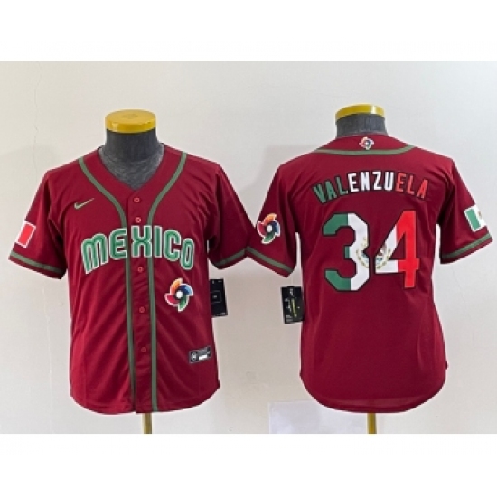 >Youth Mexico Baseball #34 Fernando Valenzuela 2023 Red World Classic Stitched Jersey10