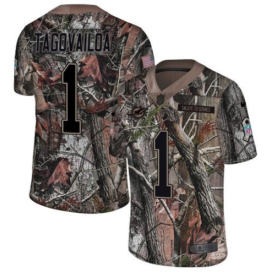 >Youth Miami Dolphins #1 Tua Tagovailoa Camo Stitched Limited Rush Realtree Jersey