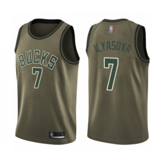 >Youth Milwaukee Bucks #7 Ersan Ilyasova Swingman Green Salute to Service Basketball Jersey