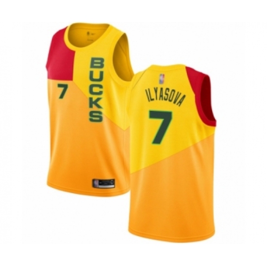 >Youth Milwaukee Bucks #7 Ersan Ilyasova Swingman Yellow Basketball Jersey - City Edition