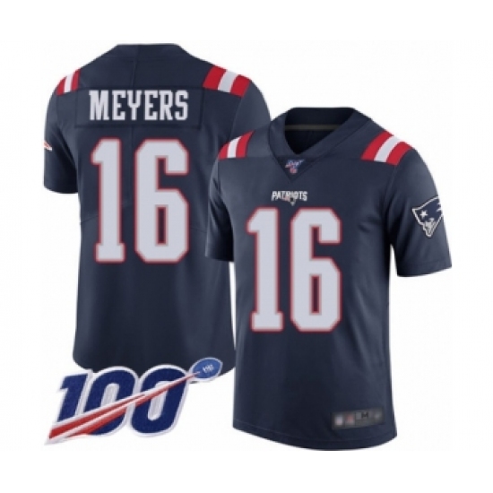 >Youth New England Patriots #16 Jakobi Meyers Limited Navy Blue Rush Vapor Untouchable 100th Season Football Jersey