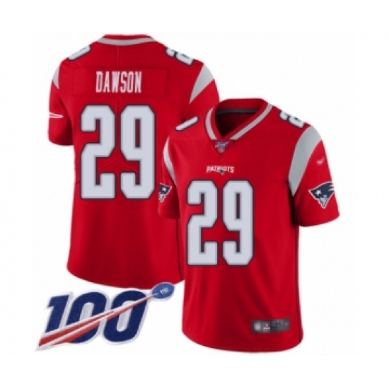 >Youth New England Patriots #29 Duke Dawson Limited Red Inverted Legend 100th Season Football Jersey