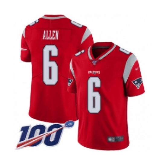 >Youth New England Patriots #6 Ryan Allen Limited Red Inverted Legend 100th Season Football Jersey