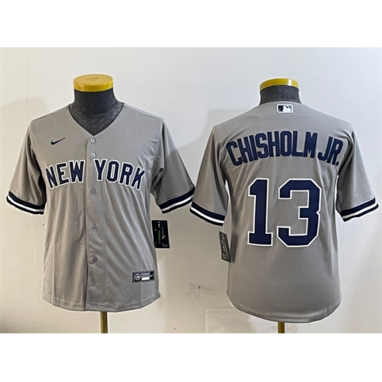 >Youth New York Yankees #13 Jazz Chisholm Jr. Grey Cool Base Stitched Baseball Jersey