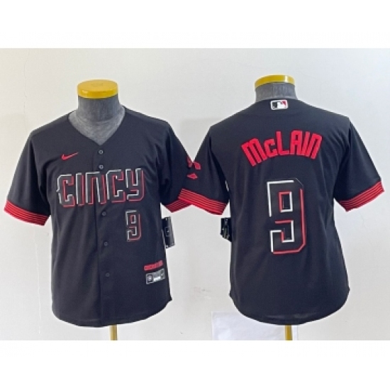 Youth Nike Cincinnati Reds #9 Matt McLain Number Black 2023 City Connect Cool Base Stitched Jersey2