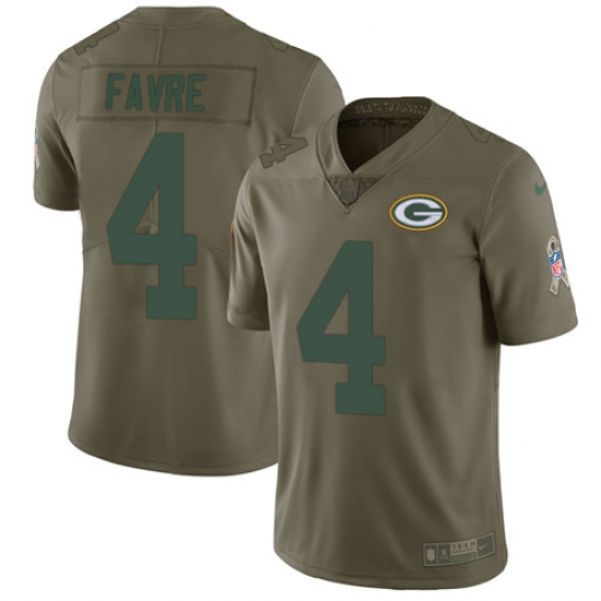 Youth Nike Green Bay Packers #4 Brett Favre Limited Olive 2017 Salute to Service NFL Jersey
