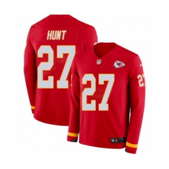 >Youth Nike Kansas City Chiefs #27 Kareem Hunt Limited Red Therma Long Sleeve NFL Jersey