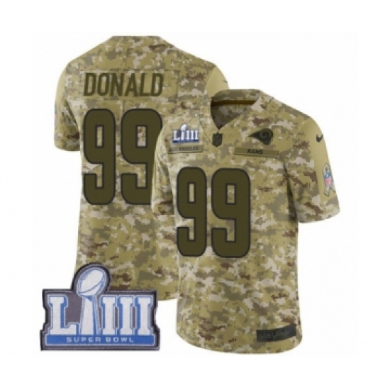 >Youth Nike Los Angeles Rams #99 Aaron Donald Limited Camo 2018 Salute to Service Super Bowl LIII Bound NFL Jersey