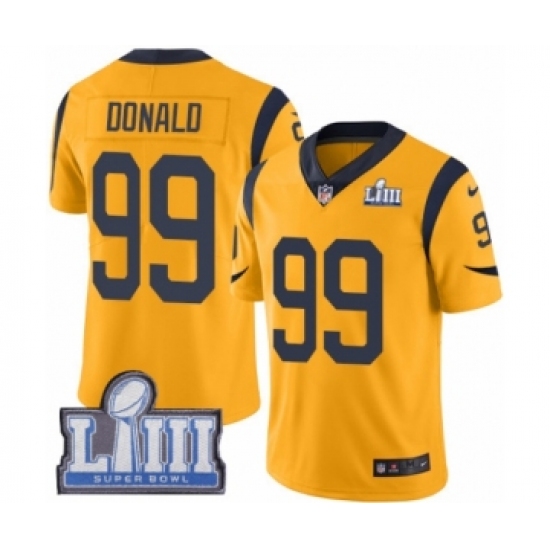 >Youth Nike Los Angeles Rams #99 Aaron Donald Limited Gold Rush Vapor Untouchable Super Bowl LIII Bound NFL Jersey
