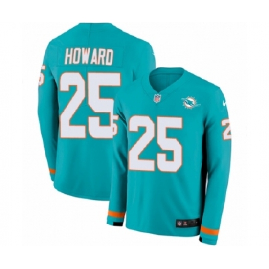 Youth Nike Miami Dolphins #25 Xavien Howard Limited Aqua Therma Long Sleeve NFL Jersey