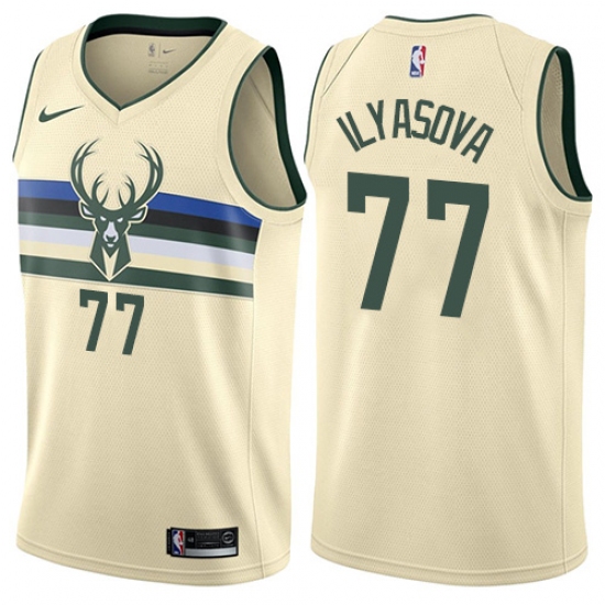 Youth Nike Milwaukee Bucks #77 Ersan Ilyasova Swingman Cream NBA Jersey - City Edition