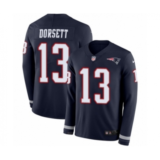 Youth Nike New England Patriots #13 Phillip Dorsett Limited Navy Blue Therma Long Sleeve NFL Jersey