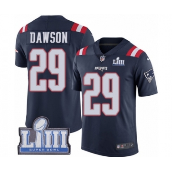 Youth Nike New England Patriots #29 Duke Dawson Limited Navy Blue Rush Vapor Untouchable Super Bowl LIII Bound NFL Jersey