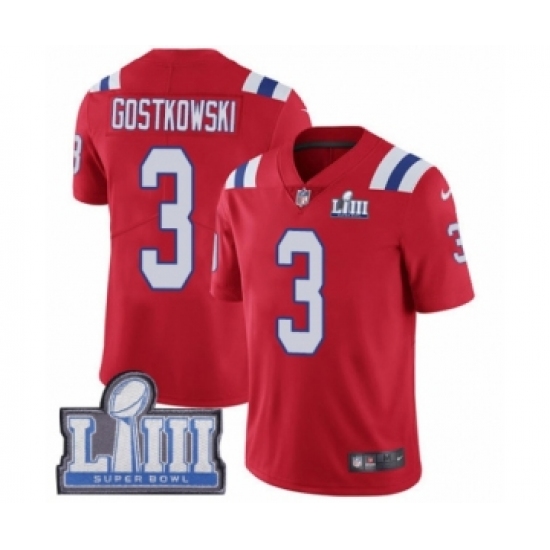 >Youth Nike New England Patriots #3 Stephen Gostkowski Red Alternate Vapor Untouchable Limited Player Super Bowl LIII Bound NFL Jersey