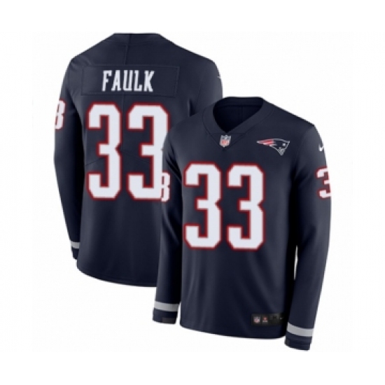 >Youth Nike New England Patriots #33 Kevin Faulk Limited Navy Blue Therma Long Sleeve NFL Jersey