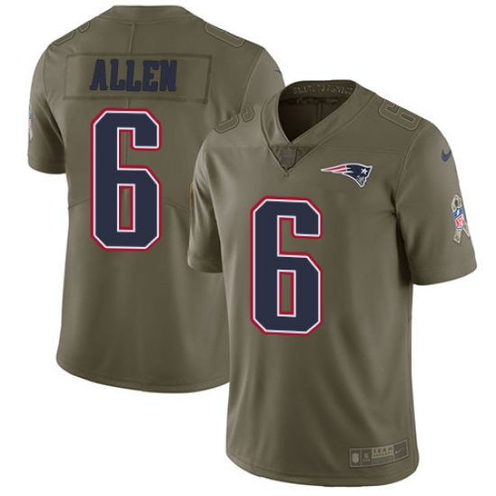 Home>NFL>New England Patriots>Ryan Allen>Youth Nike New England Patriots #6 Ryan Allen Limited Olive 2017 Salute to Service NFL Jersey