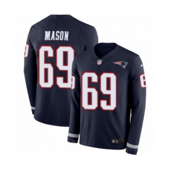 Youth Nike New England Patriots #69 Shaq Mason Limited Navy Blue Therma Long Sleeve NFL Jersey