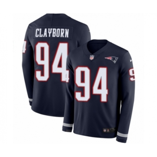 Youth Nike New England Patriots #94 Adrian Clayborn Limited Navy Blue Therma Long Sleeve NFL Jersey