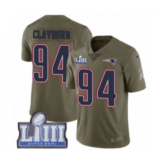 Youth Nike New England Patriots #94 Adrian Clayborn Limited Olive 2017 Salute to Service Super Bowl LIII Bound NFL Jersey