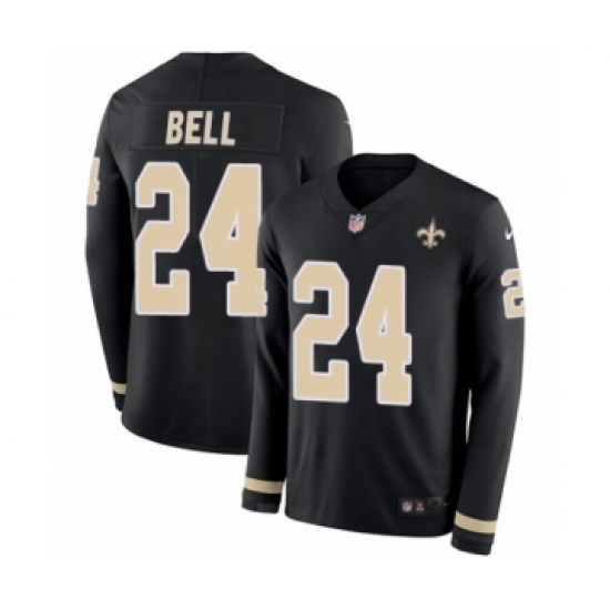 >Youth Nike New Orleans Saints #24 Vonn Bell Limited Black Therma Long Sleeve NFL Jersey
