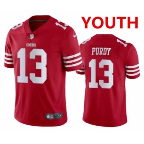 >Youth Nike San Francisco 49ers #13 Brock Purdy Red Vapor Untouchable Limited Stitched Football Jersey