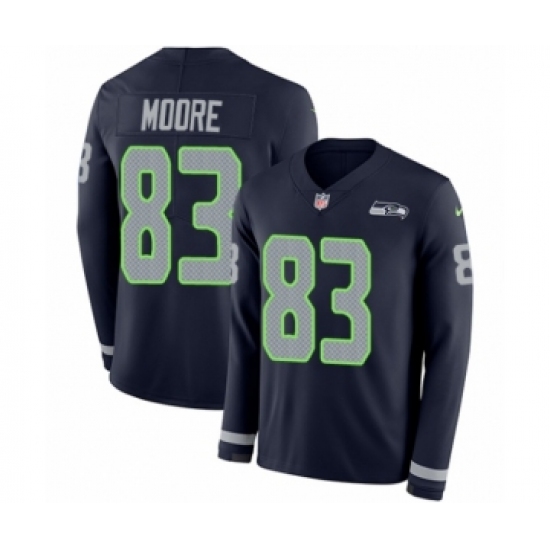 Men's Nike Seattle Seahawks #83 David Moore Limited Navy Blue Therma Long Sleeve NFL Jersey