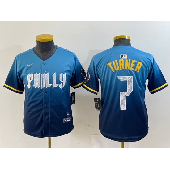 >Youth Philadelphia Phillies #7 Trea Turner Blue 2024 City Connect Limited Stitched Jersey
