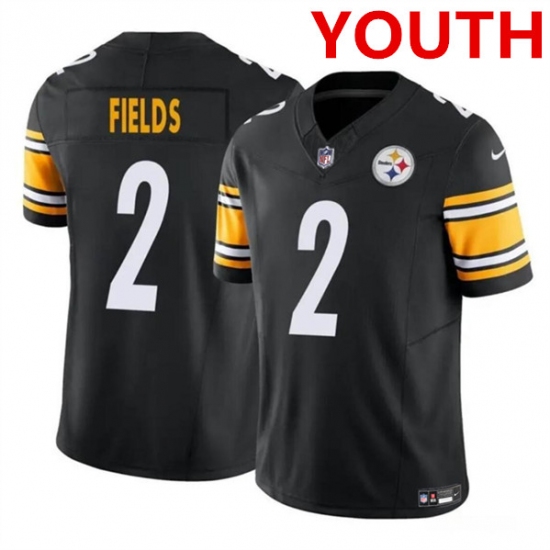 >Youth Pittsburgh Steelers #2 Justin Fields Black 2023 F.U.S.E. Vapor Untouchable Limited Football Stitched Jersey