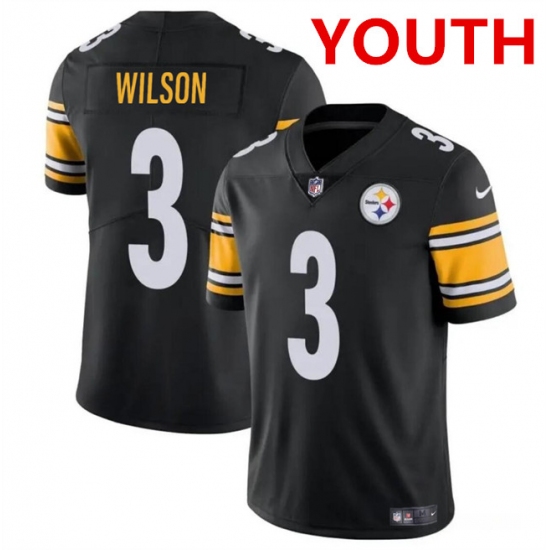>Youth Pittsburgh Steelers #3 Russell Wilson Black Vapor Untouchable Limited Football Stitched Jersey