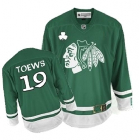 Youth Reebok Chicago Blackhawks #19 Jonathan Toews Authentic Green St Patty's Day NHL Jersey