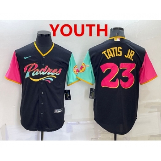 >Youth San Diego Padres #23 Fernando Tatis Jr Black 2022 City Connect Cool Base Stitched Jersey
