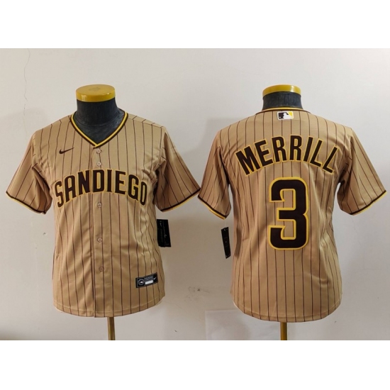 Youth San Diego Padres #3 Jackson Merrill Tan 2023 Cool Base Stitched Jersey