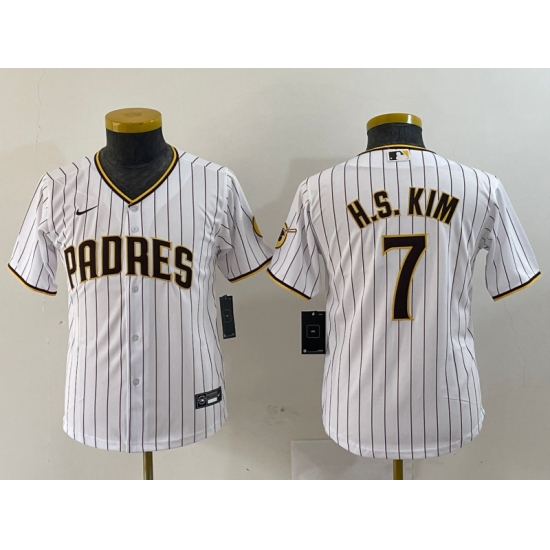 >Youth San Diego Padres #7 Ha Seong Kim White Stitched Cool Base Nike Jersey