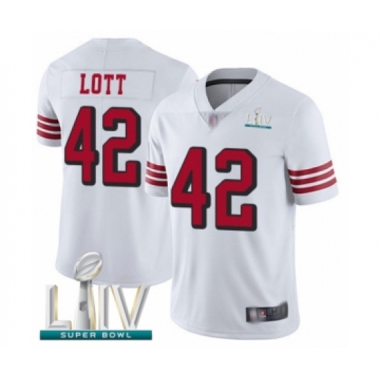 Men's San Francisco 49ers #42 Ronnie Lott Limited White Rush Vapor Untouchable Super Bowl LIV Bound Football Jersey