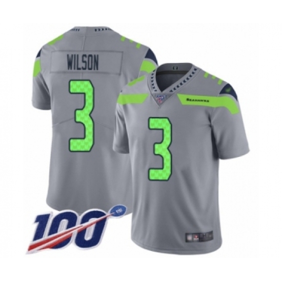 >Youth Seattle Seahawks #3 Russell Wilson Limited Silver Inverted Legend 100th Season Football Jersey