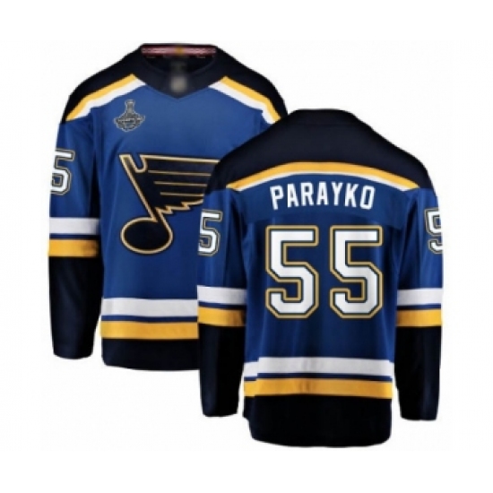 >Youth St. Louis Blues #55 Colton Parayko Fanatics Branded Royal Blue Home Breakaway 2019 Stanley Cup Champions Hockey Jersey