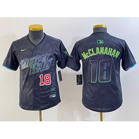 >Youth Tampa Bay Rays #18 Shane McClanahan Charcoal 2024 City Connect Player Number Limited Cool Base Jerseys