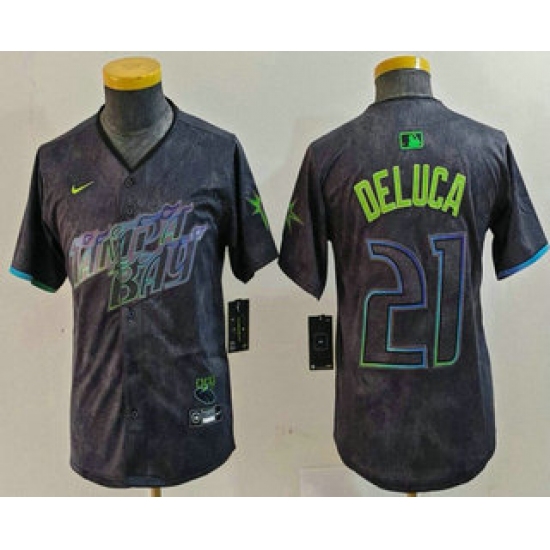 >Youth Tampa Bay Rays #21 Jonny DeLuca Charcoal 2024 City Connect Limited Stitched Jersey
