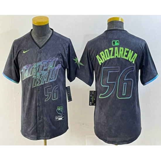 >Youth Tampa Bay Rays #56 Randy Arozarena Number Charcoal 2024 City Connect Limited Stitched Jersey
