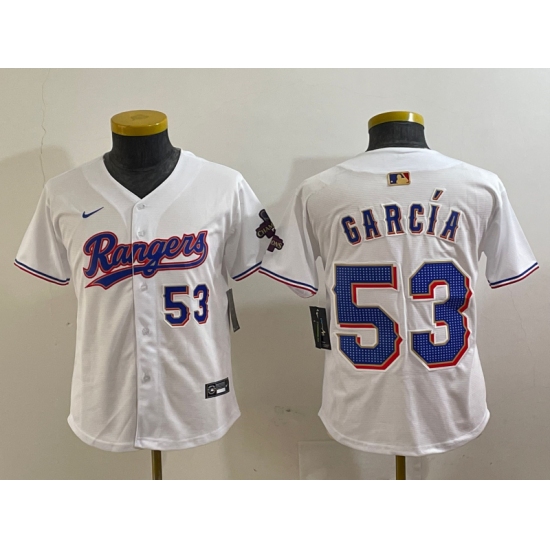 Youth Texas Rangers #53 Adolis Garcia Number White 2024 Gold Collection Limited Cool Base Jersey