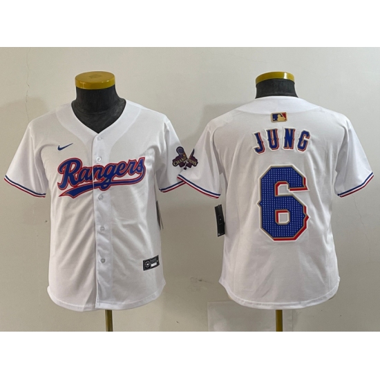 Youth Texas Rangers #6 Josh Jung White 2024 Gold Collection Limited Cool Base Jersey